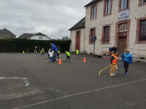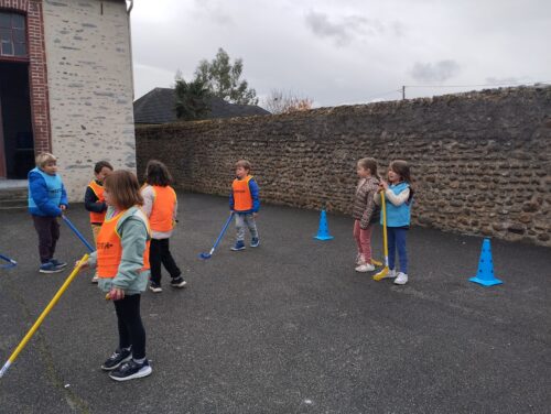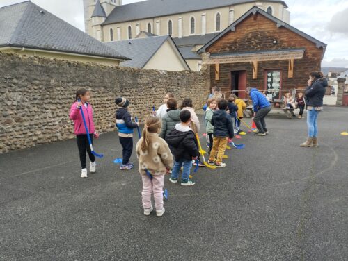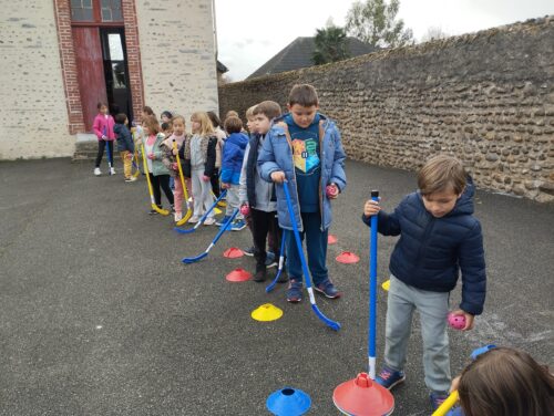 Les élèves suivent une séquence depuis plusieurs semaines pour apprendre les bases du hockey.