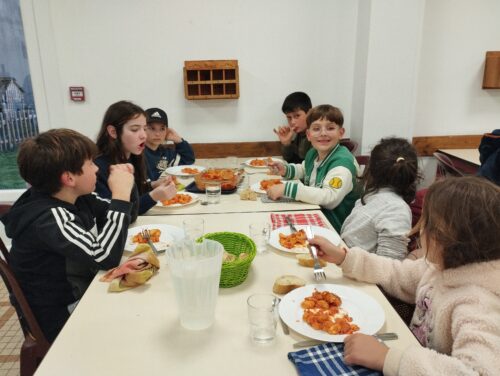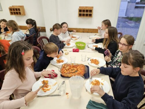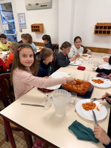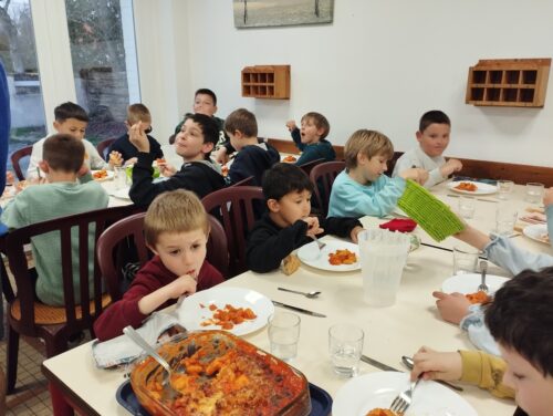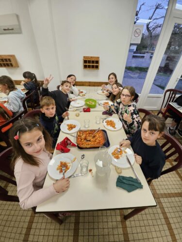 Enfin, nous avons mangé un bon repas fait maison. Tout est basé sur l’écologie, nous récupérons l’eau pour l’arrosage… Et tout est trié. Nous nous sommes régalés !!!
