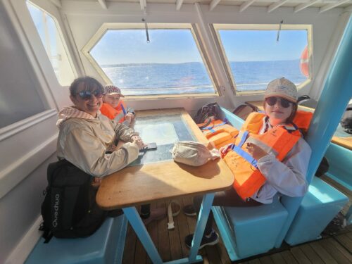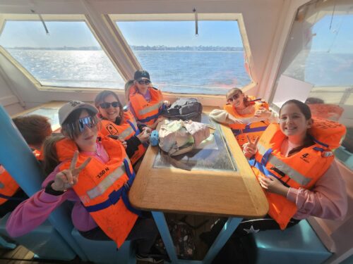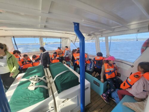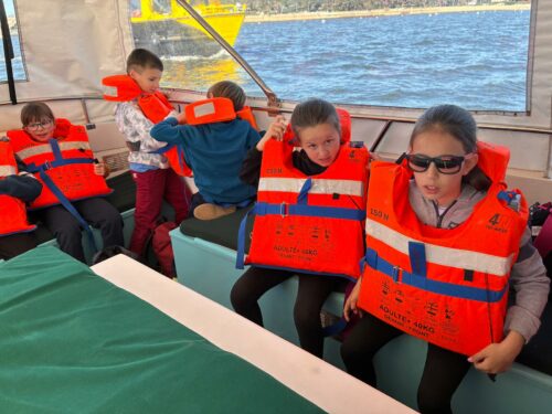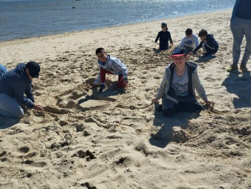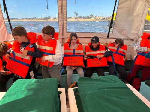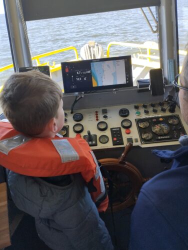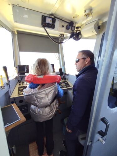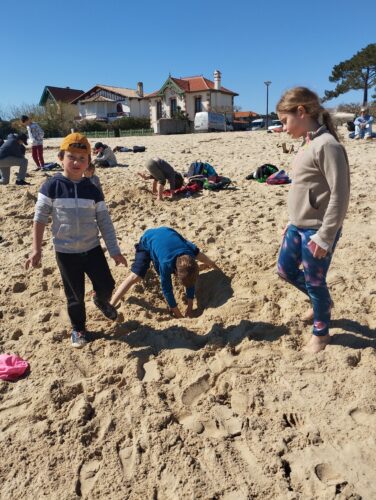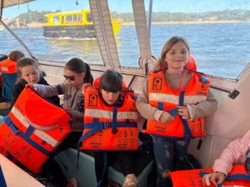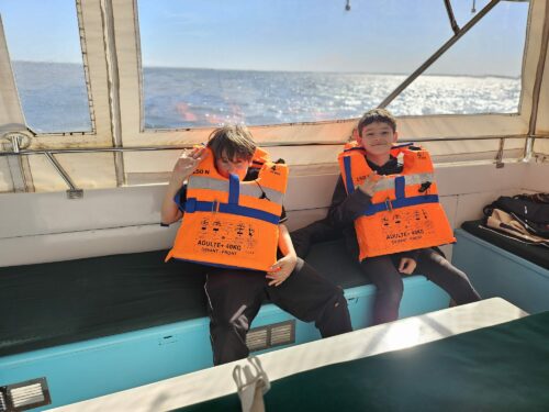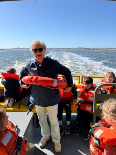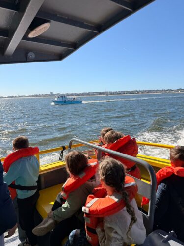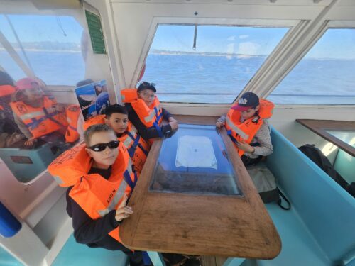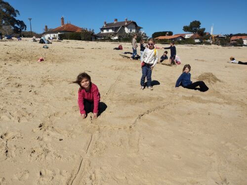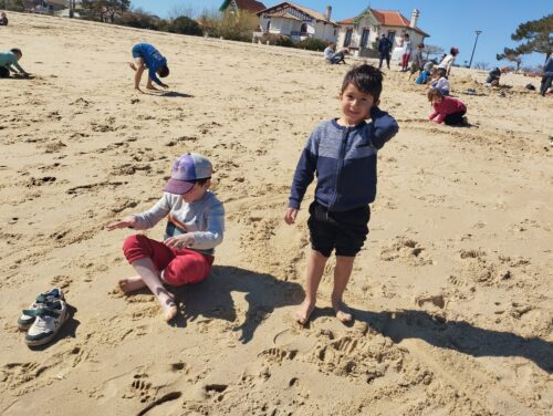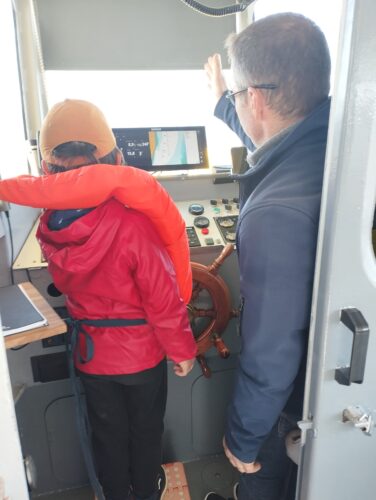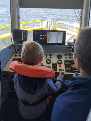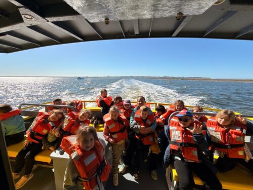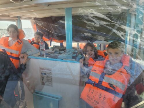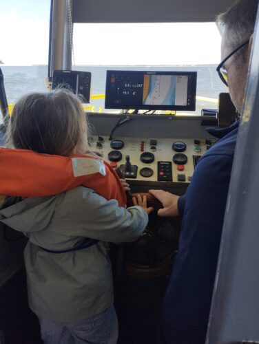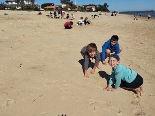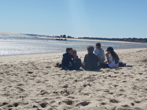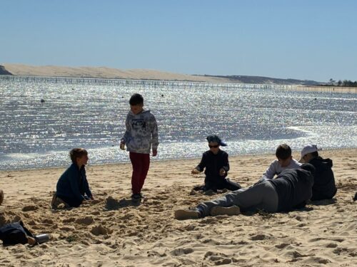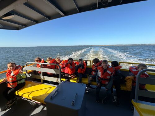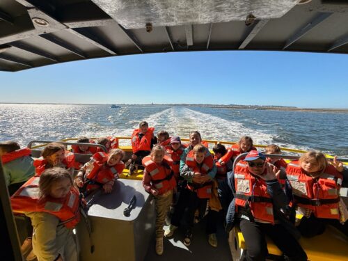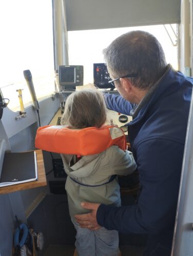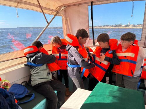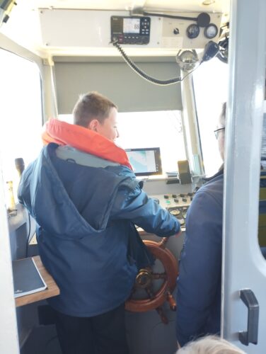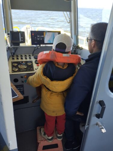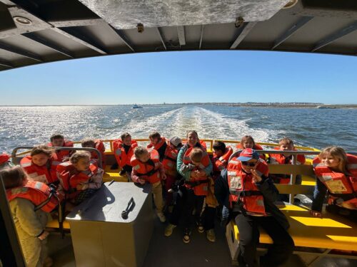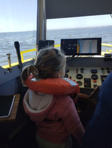 Les enfants observent, visitent. Et le capitaine nous explique beaucoup de choses sur l’océan, la Dune, l’île aux oiseaux et les maisons tchanquées. Certains enfants se sont même essayer à naviguer !